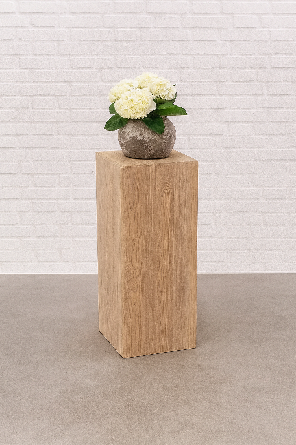 With its clean lines and timeless form, this pedestal can serve as a standalone accent piece or as a base for displaying art, plants, vases, or sculptures. The natural Elmwood grain and rich texture bring warmth and authenticity to any interior, from modern minimalism to rustic farmhouse.